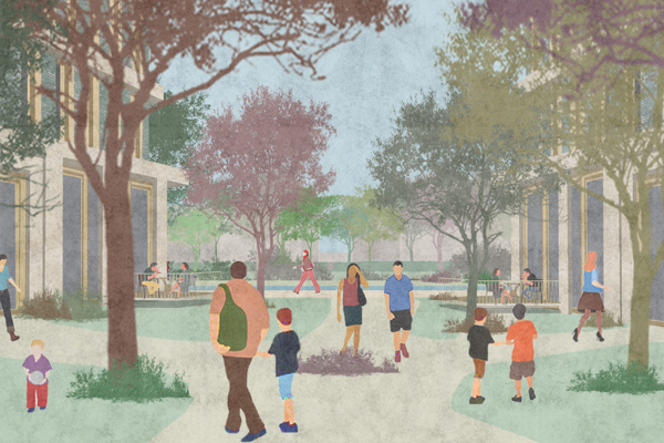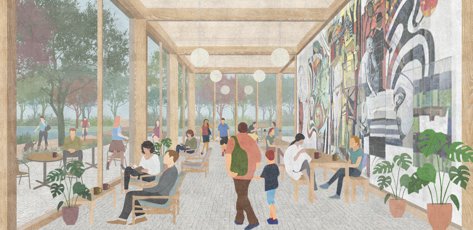 De nieuwbouw markeert straks de entree naar het park. Op de begane grond komt ruimte voor horeca. En de parkachtige inrichting rondom de gebouwen zorgt voor een natuurlijke overgang tussen het park en de wijken Centrum en alle Groninger wijken. Zo worden het groene entreegebied en het park meer onderdeel van de buurt.