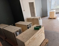Het mozaïeken kunstwerk dat in De Grote Markt hing is gedemonteerd. Het kunstwerk is ingepakt en ligt veilig opgeslagen, zie onderstaande afbeeldingen. In de nieuwbouw krijgt het kunstwerk weer een mooie plek.