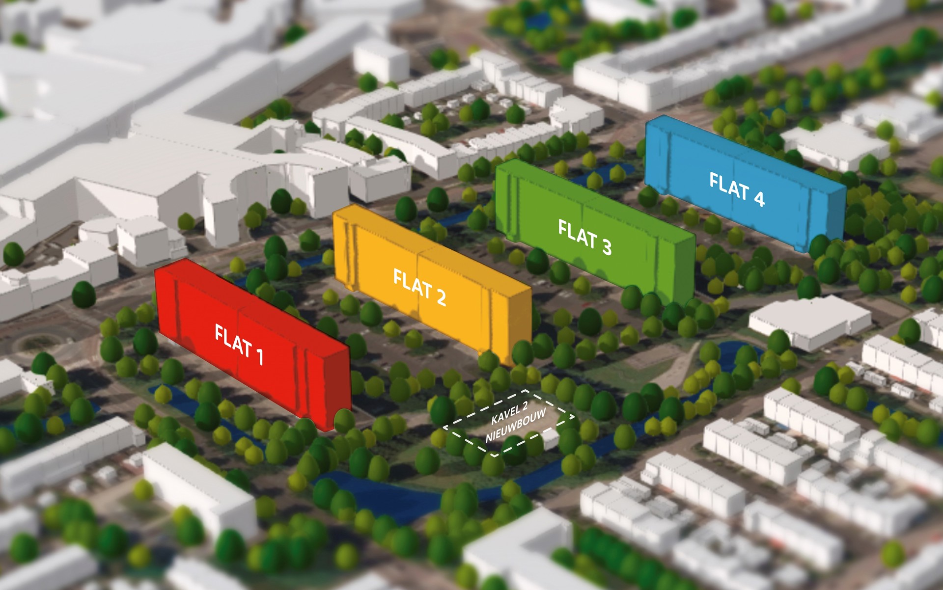 De locatie van flat 1 heeft de beste mogelijkheden om extra nieuwbouwwoningen te realiseren. Deze locatie leent zich stedenbouwkundig het beste om ook de hoogte in te gaan met de nieuwbouw. De andere locaties van de overige drie flats zijn daar minder geschikt voor.